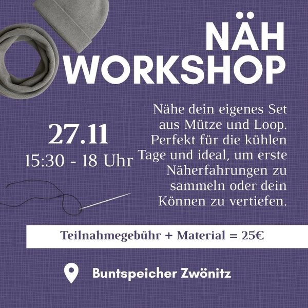 Herbstzeit ist Mützenzeit! In diesem Workshop nähst du dein eigenes Set aus Mütze und Loop – ideal für die kalte Jahreszeit. Der Kurs eignet sich sowohl für Nähanfänger:innen als auch für Fortgeschrittene.