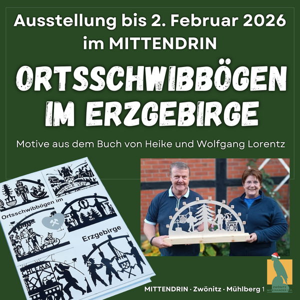 Wir zeigen Abbildungen einiger Ortsschwibbögen aus Zwönitz und der näheren Umgebung aus dem Buch von Heike und Wolfgang Lorentz, die seit Jahren Ortsschwibbögen sammeln und nachbauen.