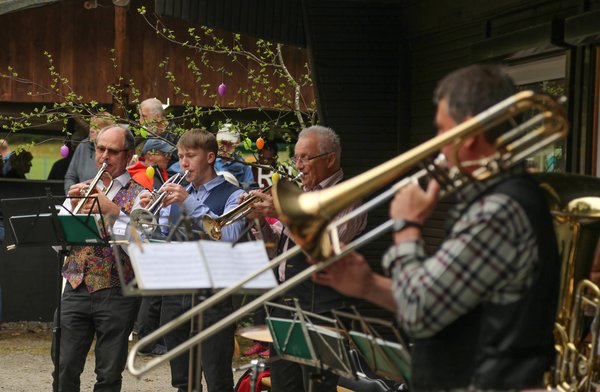 Es musizieren die Jagdhornbläser der Erzgebirgischen Blasmusikanten Zwönitz/Affalter e.V. und der "Tasten-Män" aus Geyer.